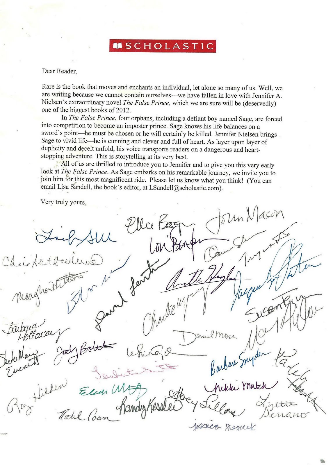 It will be very interesting to see if both reviewers and general readers agree with Scholastic, giving THE FALSE PRINCE the kind of critical kudos and sales that the publisher seems to anticipate.”
